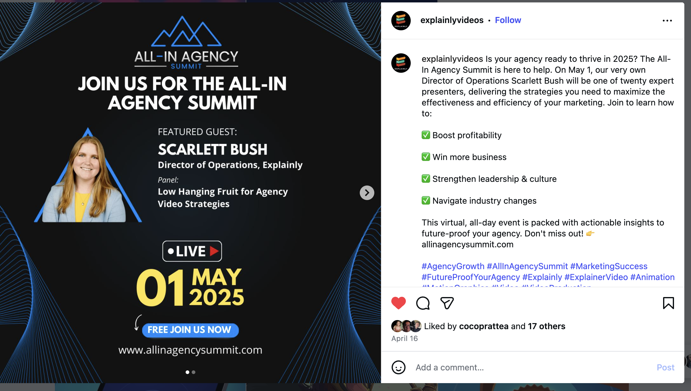 The work that Explainly did got posted on social media on a weekly basis, but much of the strategy was directed by and featuring myself. Some of these examples are below. Webinars, Inc.’s Best Place to Work, our Partnership Testimonial with Wistia and more.